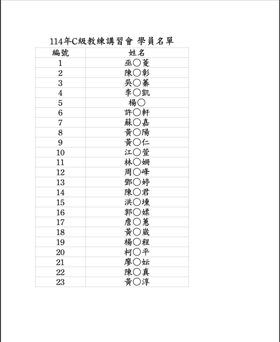 114年C級裁判講習會-學員名單